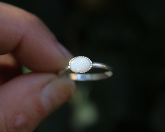 9ct Gold and Silver Opal Stacking Ring {sz.7.25}