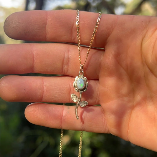 9ct Gold & Opal Flower Necklace