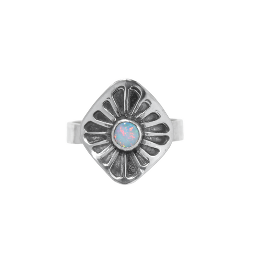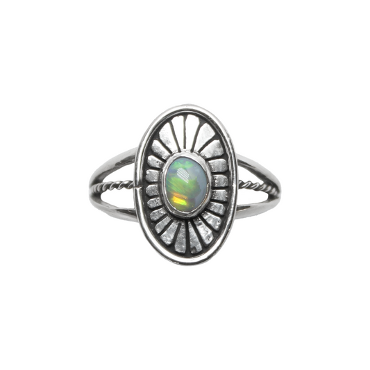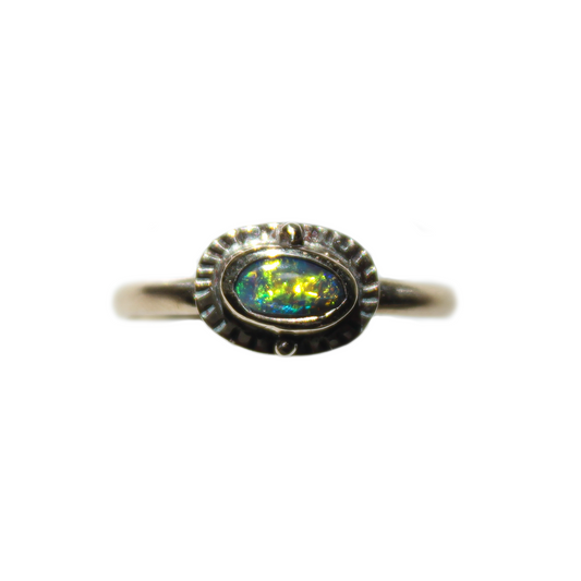 9ct Gold & Opal Sunburst Ring {sz.8}