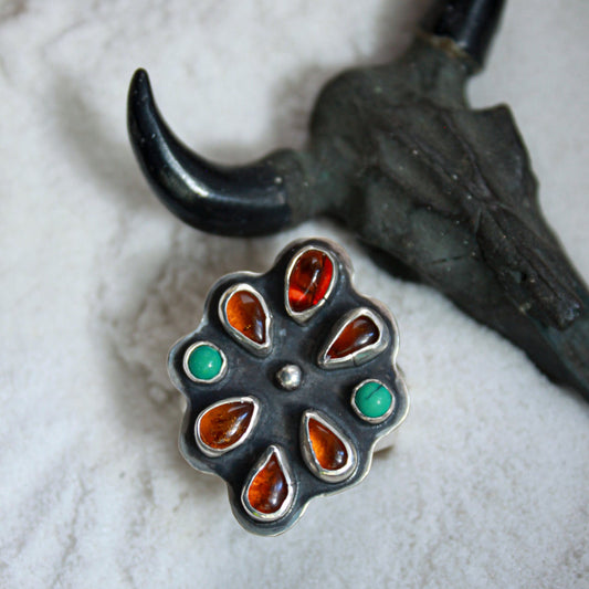 Amber & Turquoise Ring {sz.8.75}